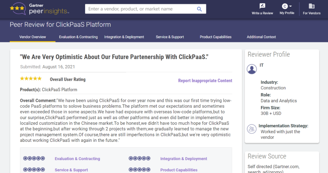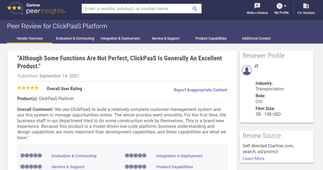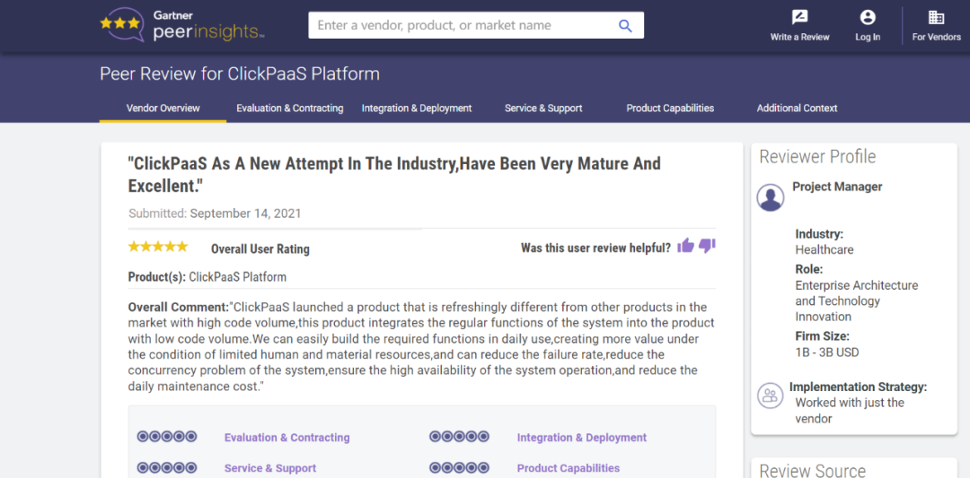 Tips::::【Peer Insights】——用户对企业IT产品和服务发布真实评价的平台。。目前已有355个市场,,,,255,000条经过验证的评价。。。每一条评价Gartner会针对参评企业营收规模及参评人员信息做验证、、评价内容做多维核实。。。